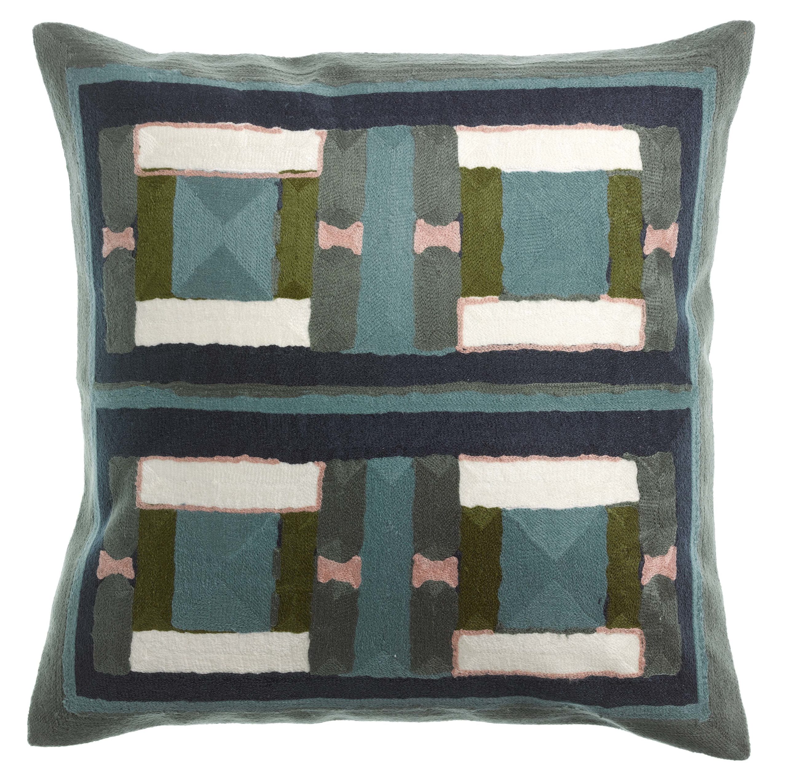 Coussin brodé Taho Vert de gris 45 x 45