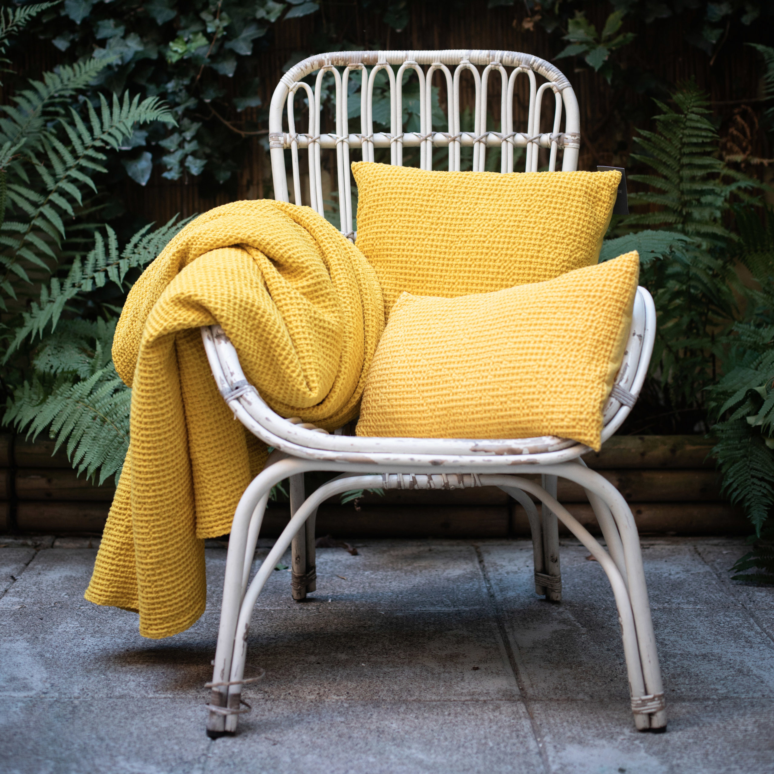 - Tissage nid d’abeille iconique Maia, à la fois décoratif et texturé.