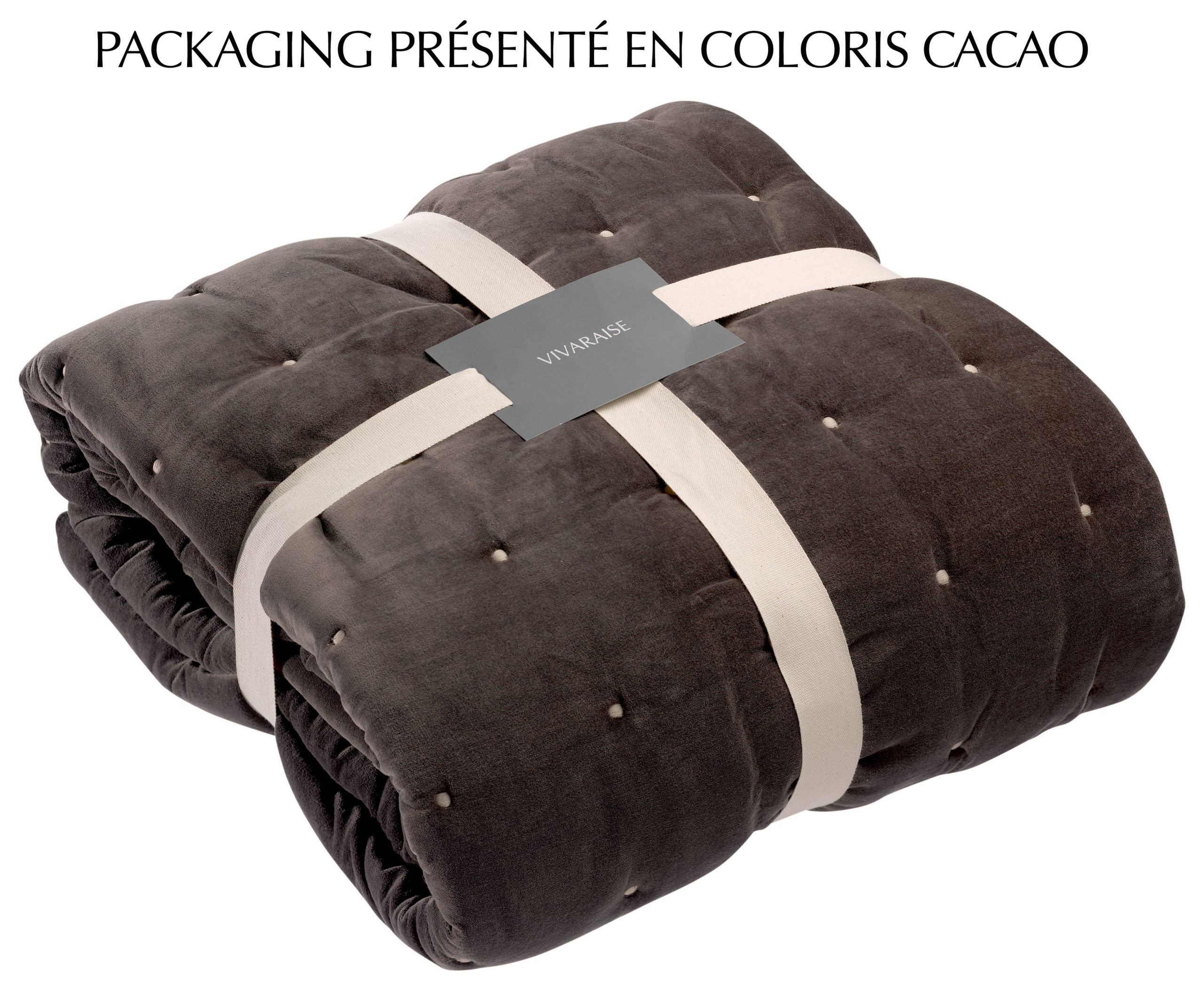 Vivaraise vous présente Jeté uni Elise finition capiton Verveine 240 x 260
