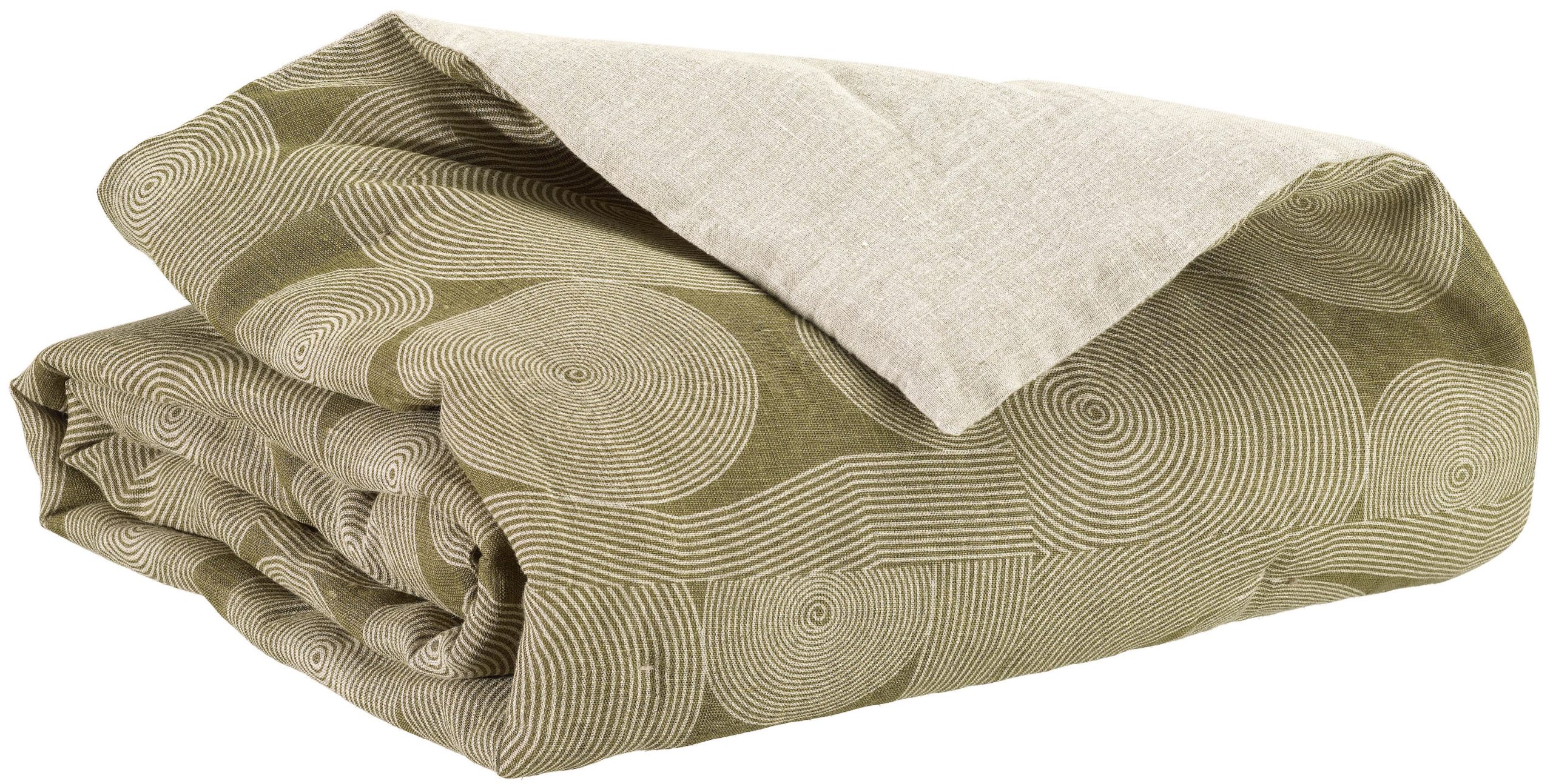 Ajoutez une note graphique avec le plaid imprimé Tito : un fond kaki profond ponctué de spirales blanches pour une modernité discrète. L’enveloppe 100% lin, au toucher naturel et texturé, s’associe à un garnissage 100% polyester au gonflant doux et résistant. À poser sur un canapé ou en bout de lit, dans une teinte naturelle facile à marier.