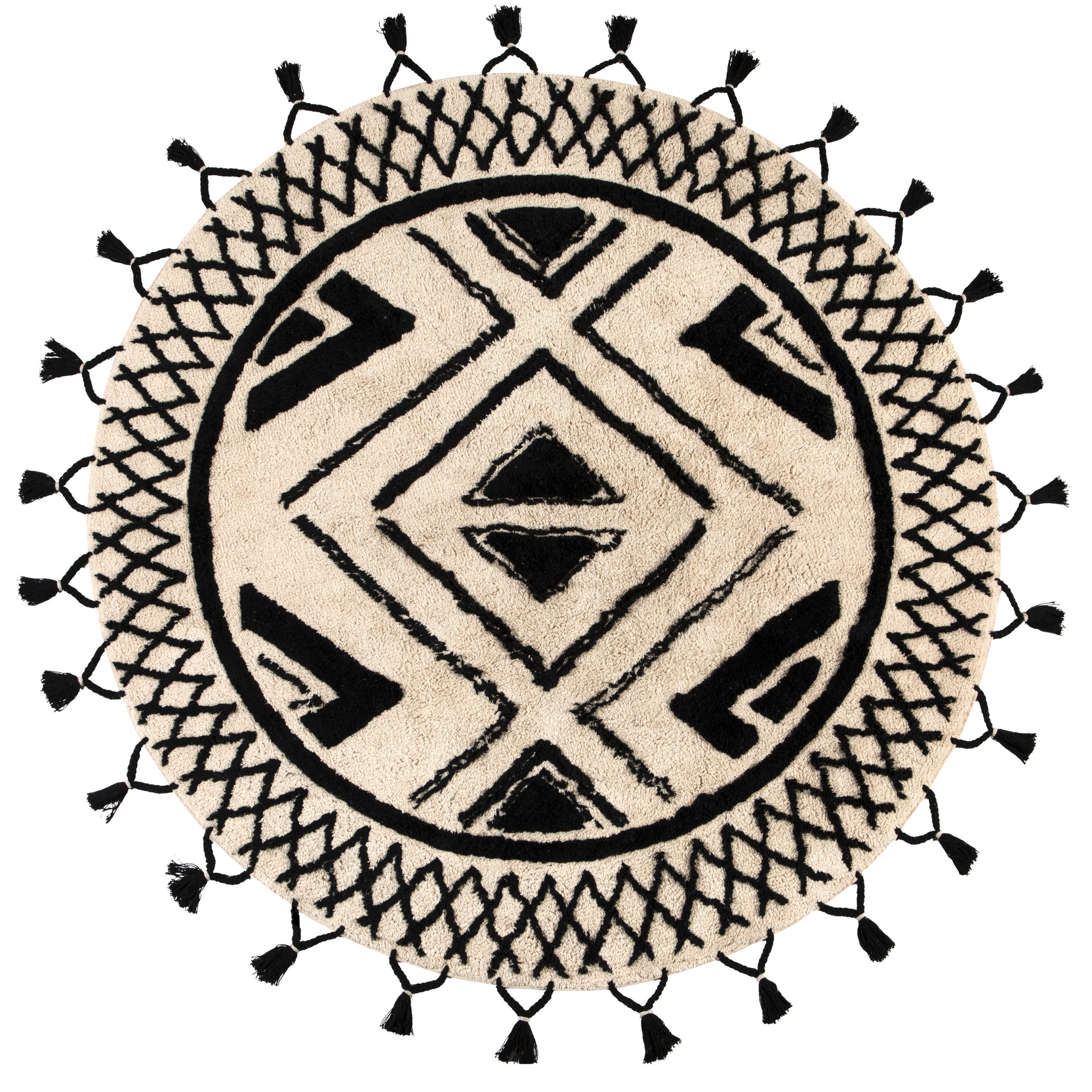 Craquez pour le tapis Sami Ombre diamètre 160 cm de Vivaraise, un tapis rond en coton au style berbère chic qui réchauffe votre salon, chambre ou bureau avec ses motifs graphiques, son toucher doux et sa finition pampilles ultra tendance.