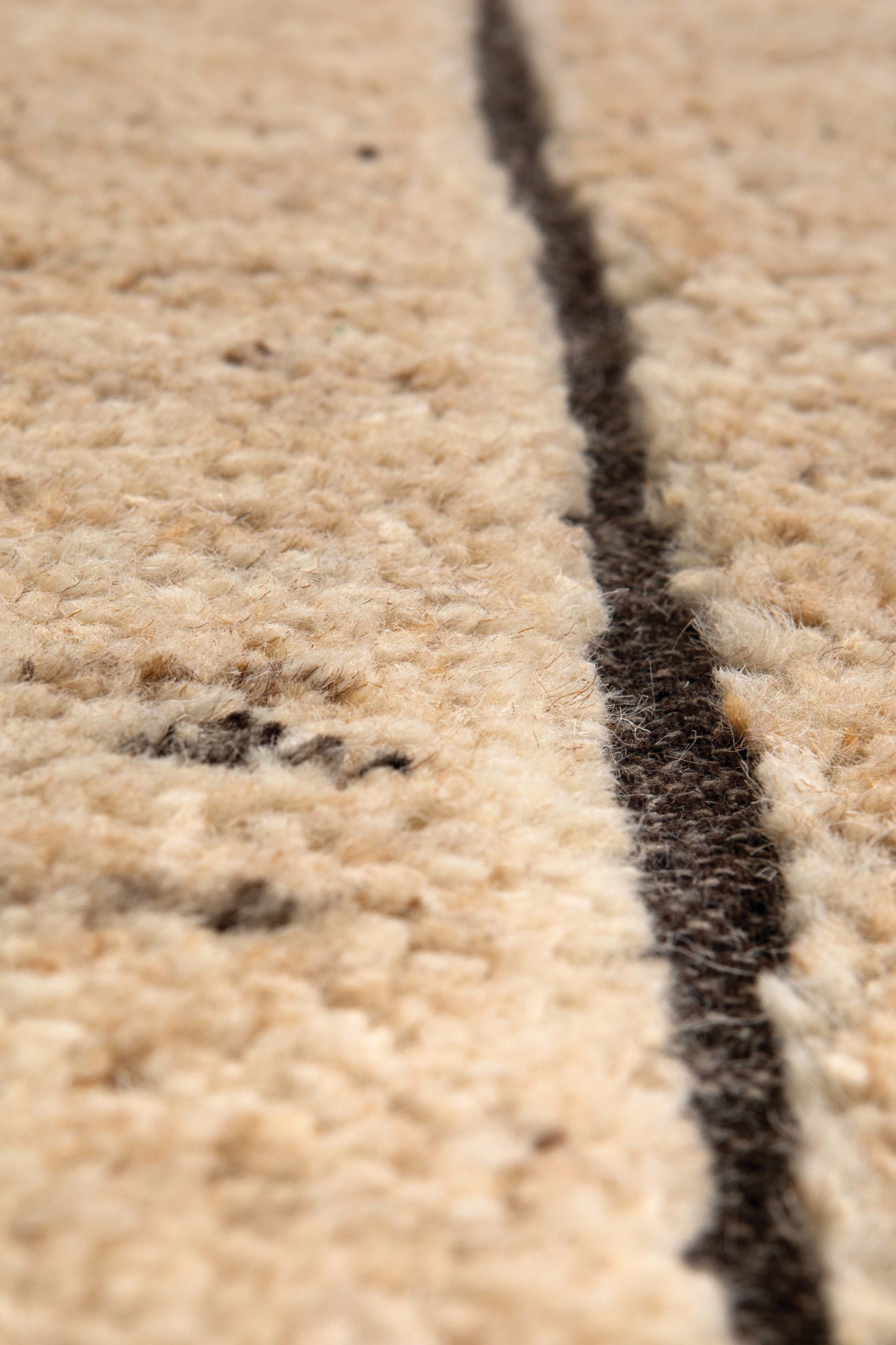 La polyvalence décorative du tapis de la gamme Zaho lui permet de s’épanouir dans tous les univers – chaleureux, minimalistes ou ethniques – prouvant sa capacité d’adaptation remarquable aux intérieurs les plus variés. Deux grandes dimensions facilitent son intégration dans les pièces de vie spacieuses, structurant l’espace avec une présence architecturale affirmée. La conception entièrement en laine révèle un toucher dense et moelleux conjugué à un pouvoir isolant naturel exceptionnel, transformant vos sols en surfaces accueillantes et confortables. Les lignes noires qui se détachent sur fond naturel composent un motif graphique où l’équilibre des formes génère une modernité saisissante et intemporelle. Cette pièce d’exception allie design contemporain et noblesse de matière, offrant à votre intérieur une dimension supplémentaire où style et authenticité se conjuguent pour créer une décoration pleine de caractère et de sophistication.