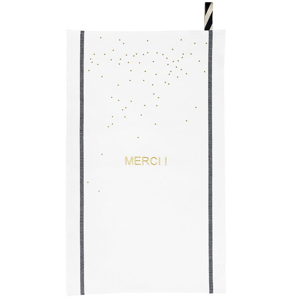La Cerise sur le Gâteau vous présente Torchon Merci Or Blanc 50 x 70